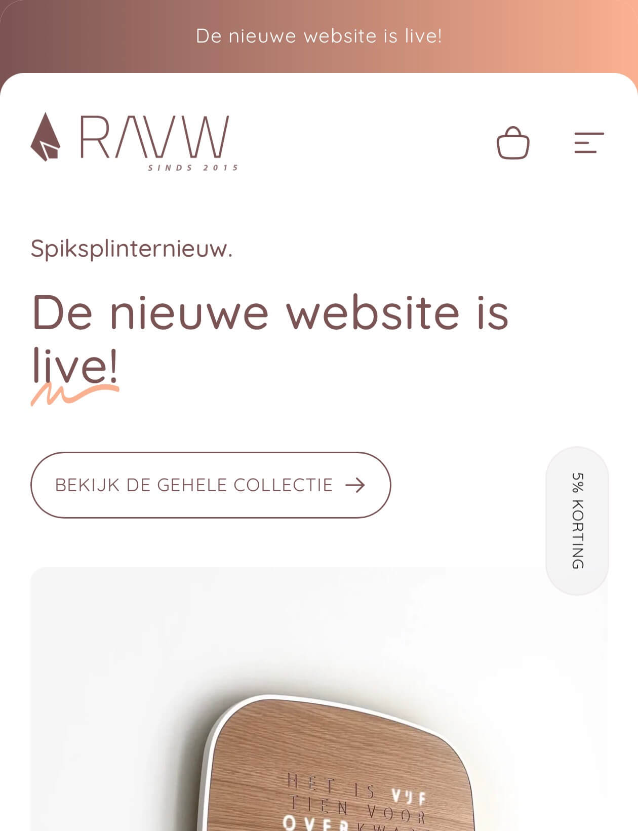 Stephanie H.Bestelde RAUW P'uur“We waren al enige tijd opzoek naar een mooi “stuk” op de muur, en kwamen per toeval via Instagram bij Rauw. De net ontwikkelde klok was precies wat we zochten, een eye catcher. Omdat het toch best een bedrag is voor een klok, wilden we hem graag in het echt zien. Dat was geen enkel probleem en we konden een afspraak maken in de werkplaats.